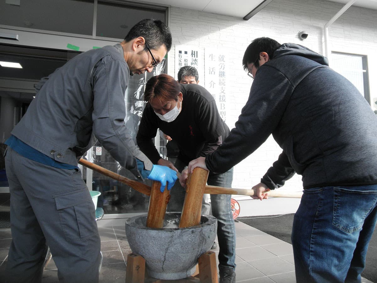 五蘊の風では、障がい者を対象に、働きやすい職場環境を提供し支援活動を行っています。就労継続支援B型 五蘊の風での作業は、電気メーター分解作業、椎茸の足切り作業・業者の内職作業・加工品では、鹿ジャーキー(犬用)の生産・金山寺味噌・季節の食材を使った加工品をしています。