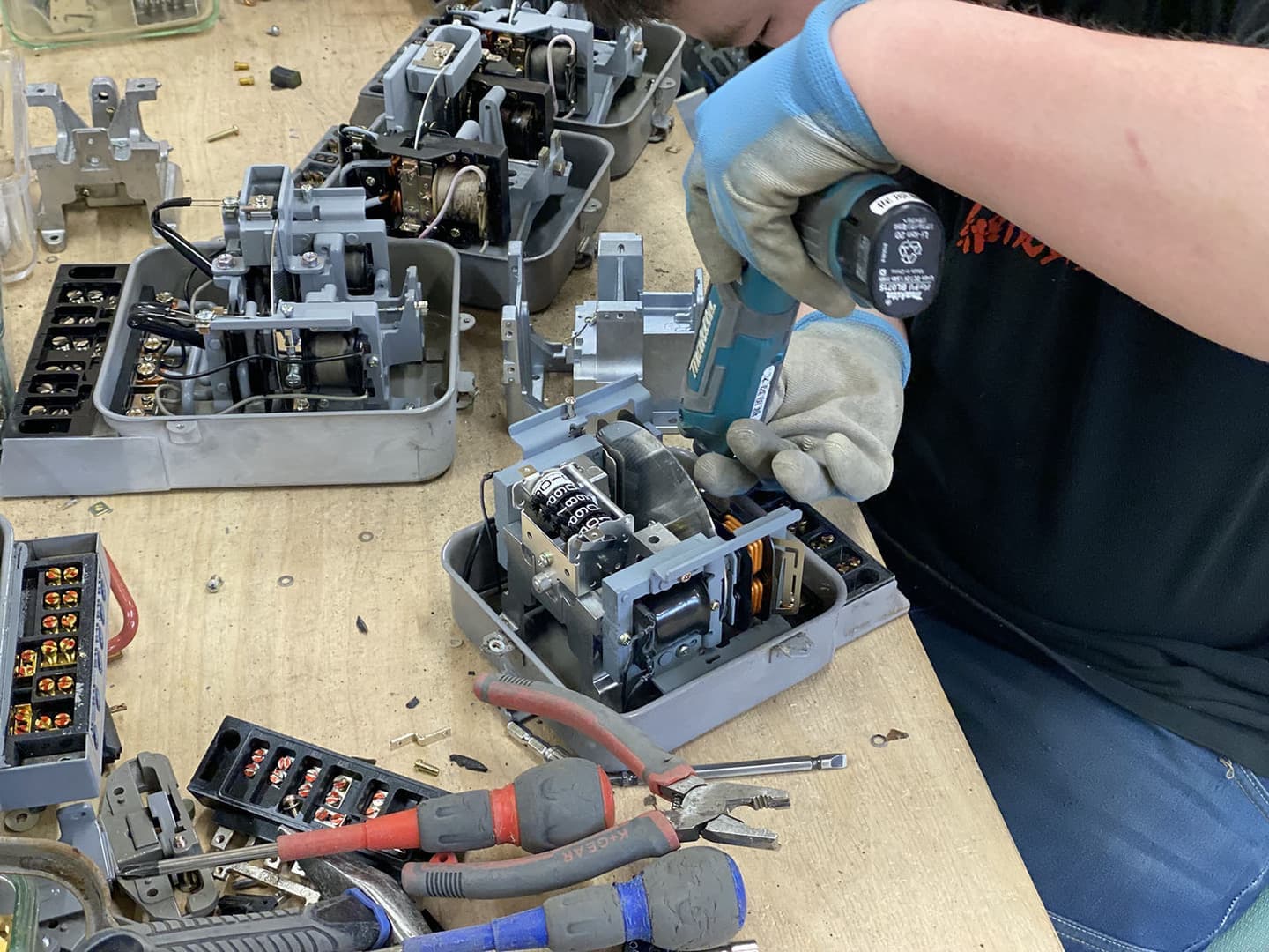 メ-タ-作業では、リサイクル事業で家庭用の電気メ-タ-を細かく分解しステンレス製・銅・鉄・真鍮・等に分ける仕事も含まれています。