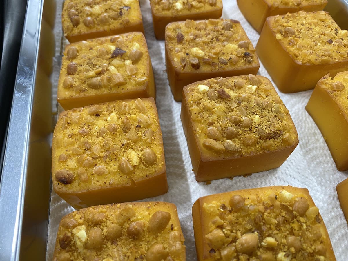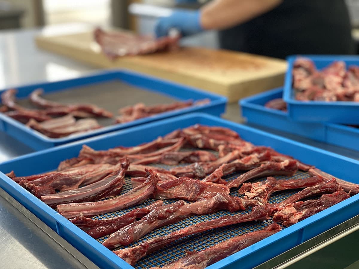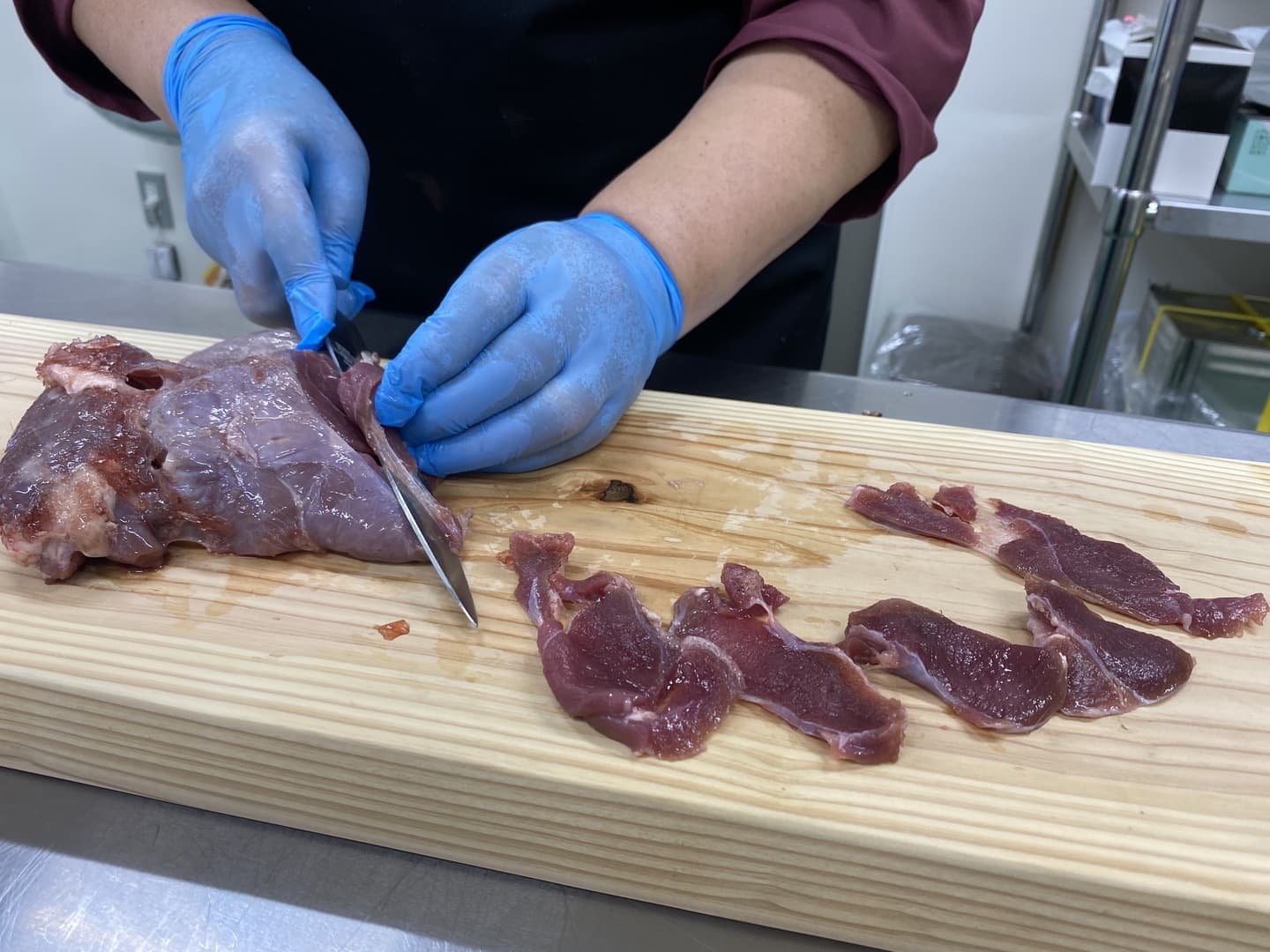 乾燥椎茸(国内産)の足切を行っています。細かい作業も含まれていますが、特に衛生面で手袋、マスク・頭キャップをして丁寧に行っています。