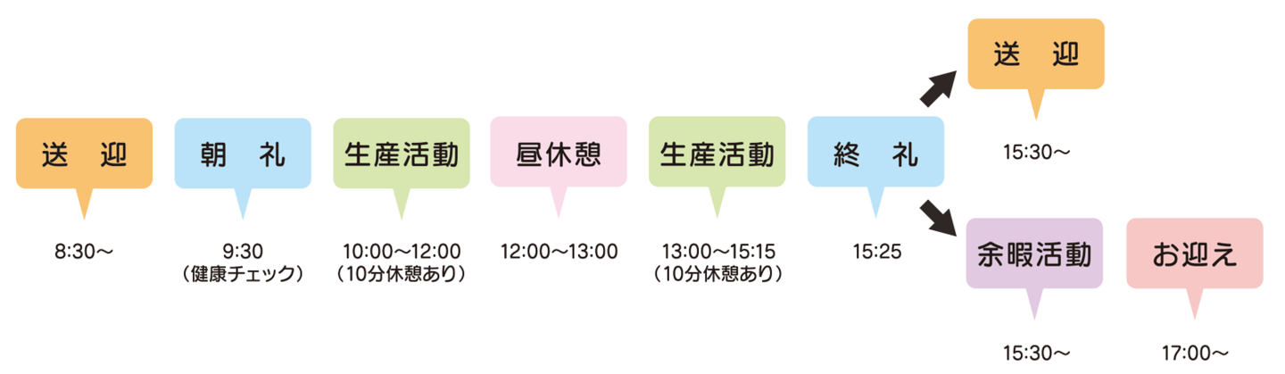 1人1人の利用者様、ご家族様の希望、意思を尊重し少しでも気持ちに寄り添える支援ができるよう日々努力を続けており、主に紙部作業、加工品の納品、弁当配達、個人個人に必要な勉強、季節ごとに様々な行事を行っています。